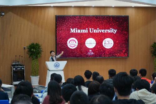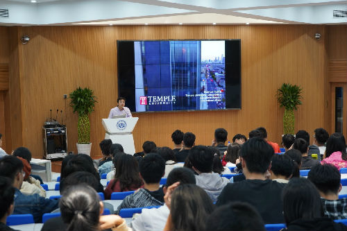 2018年11月6日晚,教育部留学服务中心携美国天普大学、迈阿密大学来访我院,在2C101为2018级中美本科项目学生召开“走进美国”专题讲座,招生留学部翁鸿钦老师主持此次讲座。