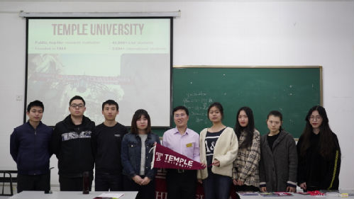 2019年3月13日,耽美小说 在2A101教室为2017级中美本科“2+2”学生举办天普大学录取通知书颁发仪式。招生留学部翁老师主持此次颁发仪式。
