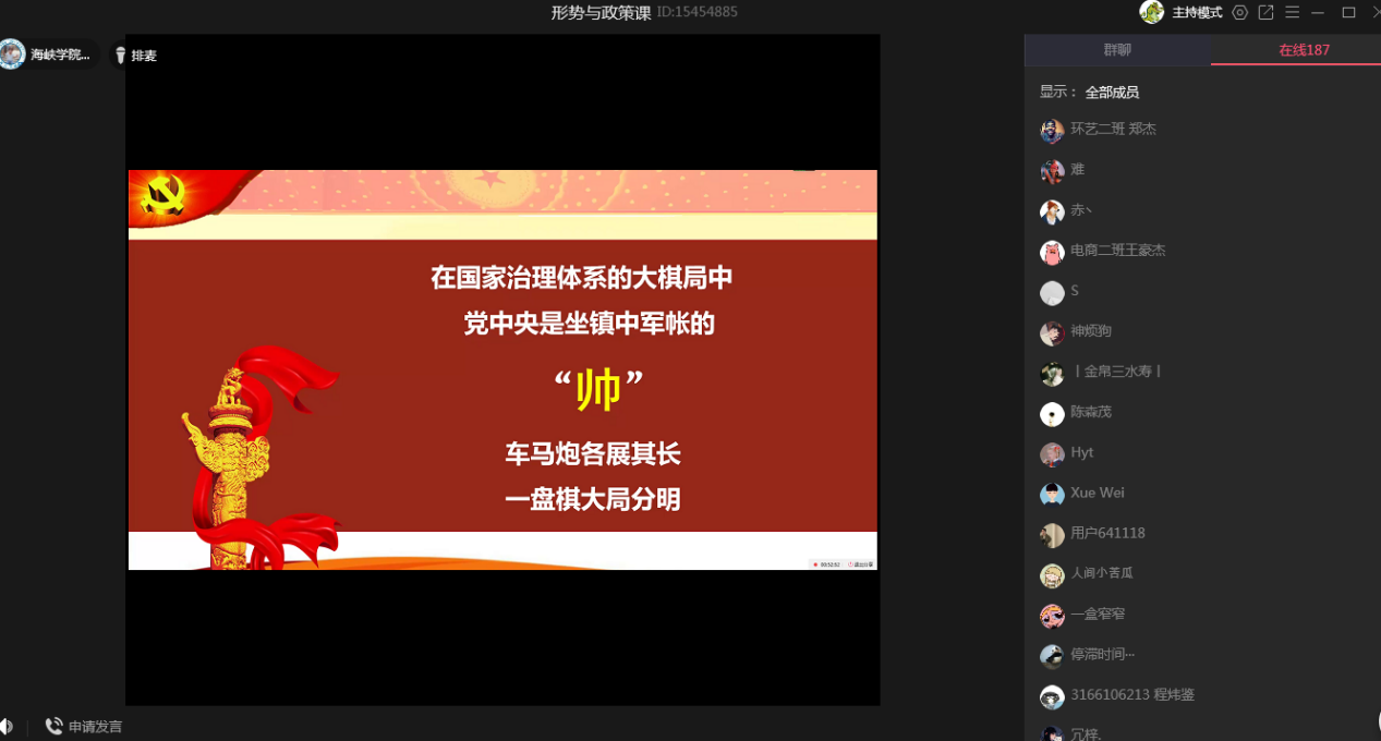 为进一步学习贯彻落实十九届四中全会精神,加强对毕业班学生的教育管理,近期,耽美小说 党委张东昱书记、李廷旺副书记分别对2020届毕业生进行形势与政策课的线上授课。