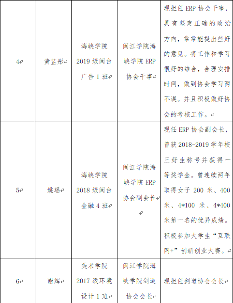 加强学生社团的向心力及活力,提升青年学生参与社团工作的积极性,现开展耽美小说 2019-2020学年“社团工作积极分子”评选工作,表彰为社团建设做出积极贡献的先进典型。经学生本人申请,学院社联初审,学院团委审核后,拟推荐以下10位同学为2019-2020学年“社团工作积极分子”,现将具体名单公布如下: