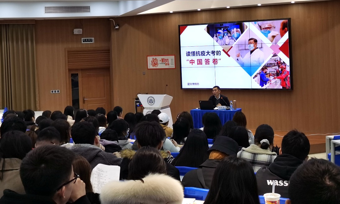 本次形势与政策课程以《读懂抗疫大考的“中国答卷”》为主题,从“彰显了以习近平同志为核心的党中央的坚强领导”、“显示了中国特色社会主义制度的显著优势”、“见证了中国人民坚韧奉献、守望相助的民族精神”、“检验了我国治理体系和治理能力的效能水平”、“展现了改革开放以来积累的雄厚物质技术基础”和“书写了践行人类命运共同体理念的大国担当”六个方面对这张“中国答卷”进行了具体的阐述,形象的展现了党的坚强领导和社会主义制度的优越性,生动地体现了中国人民在疫情防控中展现的中国力量、中国精神、中国效率,展现了负责任的大国形象,引导学生坚定不移地传承爱国主义精神,不忘初心、牢记使命,勇做走在时代前列的奋进者、开拓者、奉献者。