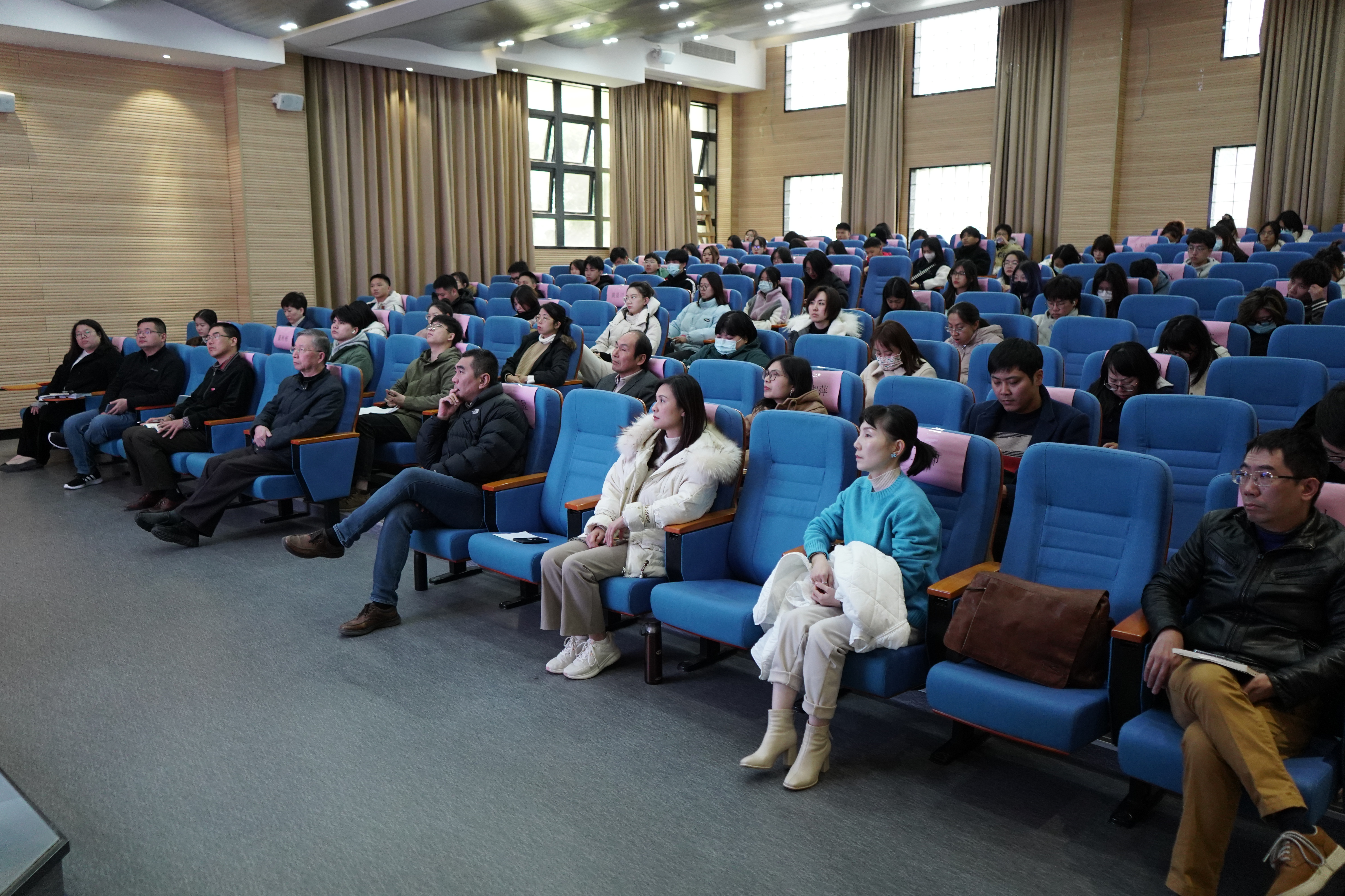 党委书记张东昱主持,学院全体教职工、学生代表参加报告会。