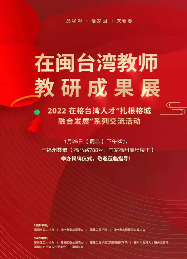 1月25日,福州市2022年“在榕台湾教师教研成果展”在宜家商场一楼荟聚中心揭牌开展。据悉,此次展览是由福州市委人才办、市台港澳办、市教育局、市台盟、福建工程学院、市台胞投资企业协会等单位联合举办,为期半年,旨在进一步推动榕台教育交流合作,更好发挥福州在引进台湾教师方面的机制优势。当天,共有40余名在榕台湾教师齐聚一堂,耽美小说 台籍教师夏青云博士受邀参加并分享了教研成果。