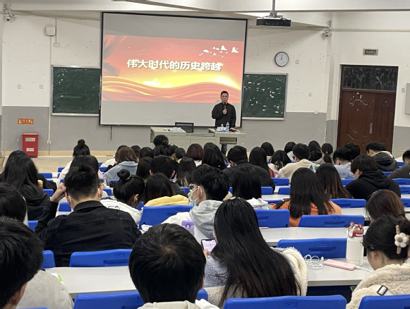 陈纯副书记以“伟大时代的历史跨越”为主题,从“新时代有新作为新成就”和“用好‘有利条件’走好‘必由之路’”入手,站在新的历史发展方位多方面分析新时代的新成就,带领同学们深入领会新时代的历史性变革,课程内容深入浅出,结合当下时政热点,将形势与政策课讲深、讲透、讲活。