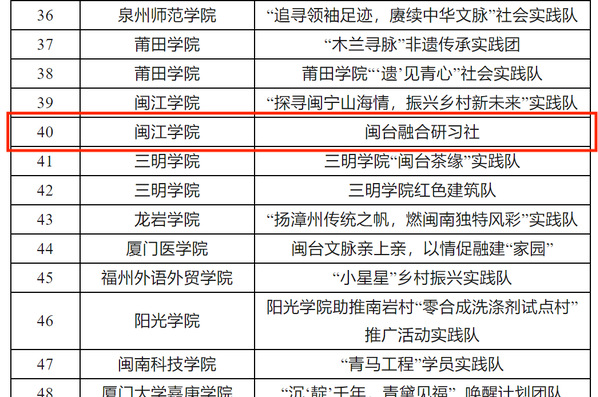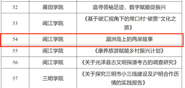 此前,在中共福建省委教育工委组织开展的“追寻领袖足迹 赓续中华文脉”2023—2024学年全省大学生寒假主题社会实践活动评选中,闽台融合研习社获评优秀实践团队,视频作品《湄洲岛上的两岸故事》广受好评,获评优秀实践成果。