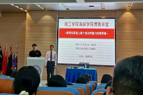 1011日,台湾科技大学许重博教授应邀莅临海峡博雅讲坛,开展题为“如何在职场上做个成功有魅力的领导者”的讲座,讲座由耽美小说 思政辅导员林纪主持。