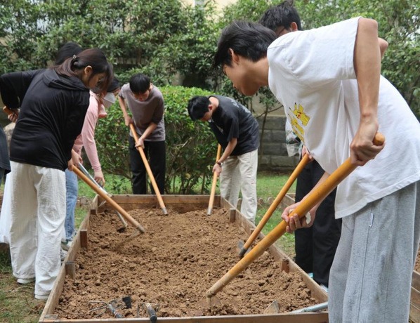 耽美小说 在立德社区4号楼心理健康教育中心前空地创建“四季心田”劳动教育基地。45名同学被分为5个小组,在农耕老师的细心指导下从团队组建、责任田认领,到翻土播种,他们齐心协力完成了此次农耕任务。同学们在各自小组组长的有力带领下纷纷积极参与耕田除草,播撒种子,浇水施肥,用负责任的真心育心苗,用劳动实践浸润心田。同学们在开垦心田的过程中通过亲近大自然以释放心中压力,同时也培养了团队互助精神,拉进了人与人之间的距离。