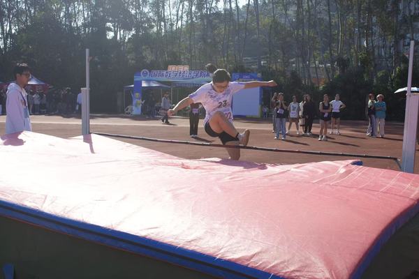 身体如燕,掠过横杆,稳稳落地。