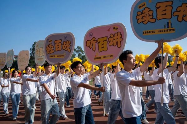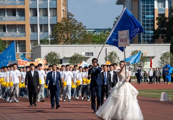整齐划一的动作,展现出海峡学子间的凝聚力与向心力,在绿茵场上绘出了当代青年学生“以青春之自我,创建青春之国家,青春之民族”的理想信念。健身操表演充分彰显海峡人积极向上的精神面貌与自信昂扬的斗志,为运动会营造出热烈的氛围。