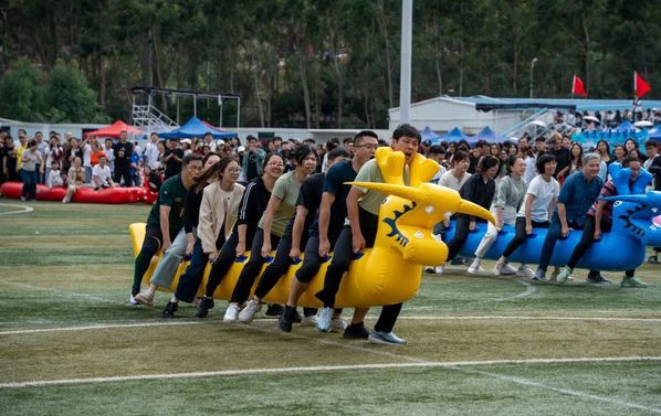 从一分钟双人踢毽子比赛到跳远比赛,再到活力四射的动感颠球比赛,以及充满乐趣的插秧收割比赛,最后到充满激情的旱地龙舟比赛,每一项活动都不仅仅是速度与力量的较量,更是团队协作与默契配合的舞台。他们相互鼓励,彼此扶持。每一次传球、每一次跳跃、每一次接力都凝聚着积极向上、团队协作的力量。