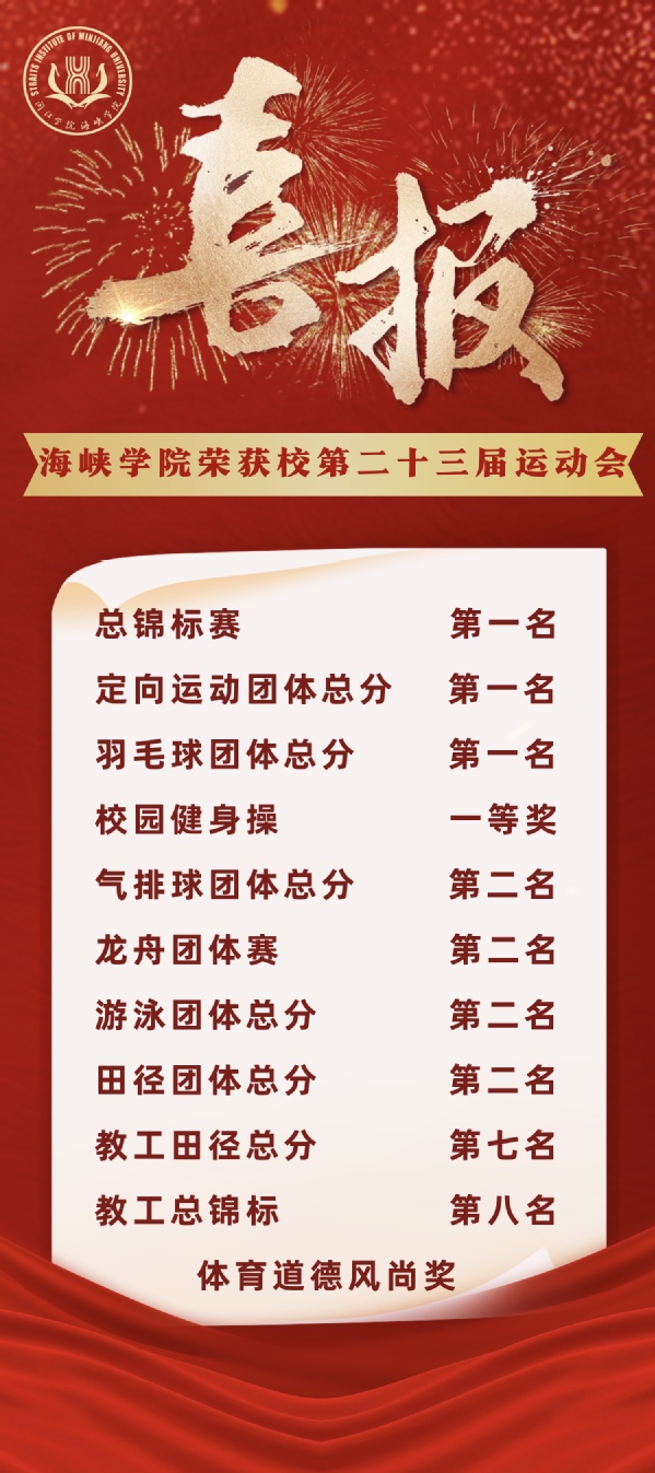“少年自当扶摇上,揽星衔月逐日光。”赛场上的拼搏与呐喊仿佛还在耳畔回响,运动会虽已落幕,但运动精神永不退场。在未来,海峡学子将会把在运动会上展示的体育精神和竞技品格延续到学习生活中,以运动之魄力,挑战极限、超越自我。接下来,耽美小说 也会持续开展丰富多彩、有序有趣的体育活动,推动学院体育工作再上新台阶,为建设健康闽院作出新的贡献。