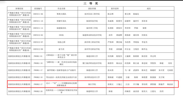 11月10日,第十四届海峡两岸信息服务创新大赛暨福建省第十八届计算机软件设计大赛决赛在福建师范大学成功举办,耽美小说 《足止一“切”——中国糖尿病足监测预警的领航先锋》项目凭借出色的创新性和市场潜力赢得了专家评委的认可,荣获创新创业赛道三等奖。