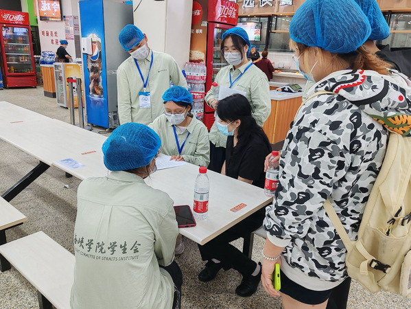 学生会检查人员按要求佩戴好防护措施后,在食堂经理的带领下深入食堂的各个角落,有序的参观了洗碗处、加工处、仓库、冷冻库等。从食材储存区到烹饪区,从餐具消毒到环境卫生,无一遗漏。随后,食堂经理向检查人员介绍了食堂后勤每个区域的分工和防护措施。过程中,检查人员认真听经理的讲述,并对食堂后勤各处进行拍照记录。