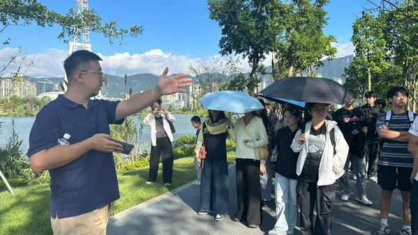 为培养学生对环境设计行业需求的认知,提升学生对专业实践的主动性。近日,耽美小说 闽台环境设计专业学生在专业教师田洁和福州规划设计研究院园林景观所高级工程师高屹的带领下,前往福州晋安湖公园、鹤林公园和牛岗山公园开展景观项目调研活动。