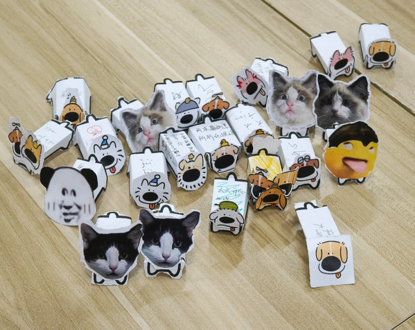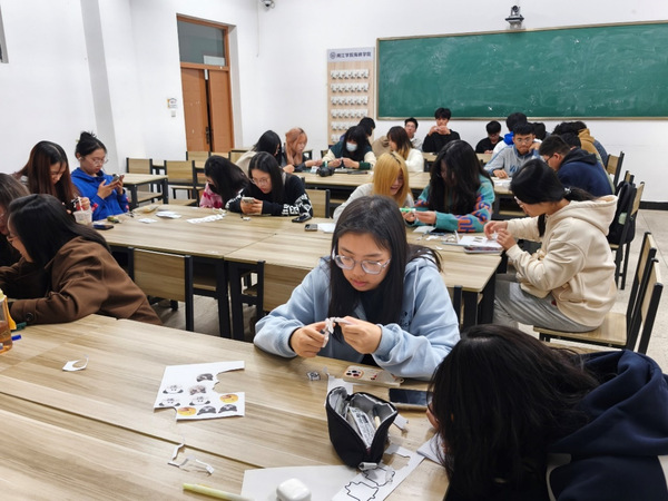 活动伊始,同学们分成若干小组,在班委负责人的指导下制作属于自己的卡通小狗。大家对小狗图纸进行裁剪和粘贴,并将自己的创意和想法充分展现出来。此过程不仅能让同学们释放压力,还有益于打破同学之间隔阂,建立团队的默契与信任,使同学们能够更好地相处,从而增强班级凝聚力。
