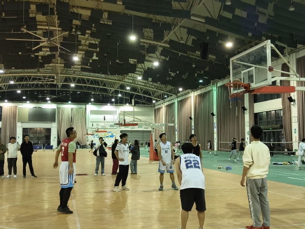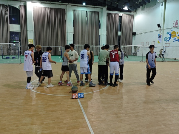 镜头来到篮球场上,孙维鹏副书记以及辅导员代表组成一队,联系学生宿舍成员组成一队,进行一场师生篮球友谊赛。篮球赛由洪晓林书记开球,双方你来我往,每一次进攻与防守都全力以赴,展开了一场精彩纷呈的篮球赛。篮球赛后,荣誉舍长们和各学生宿舍相互握手,并进行合照留念。