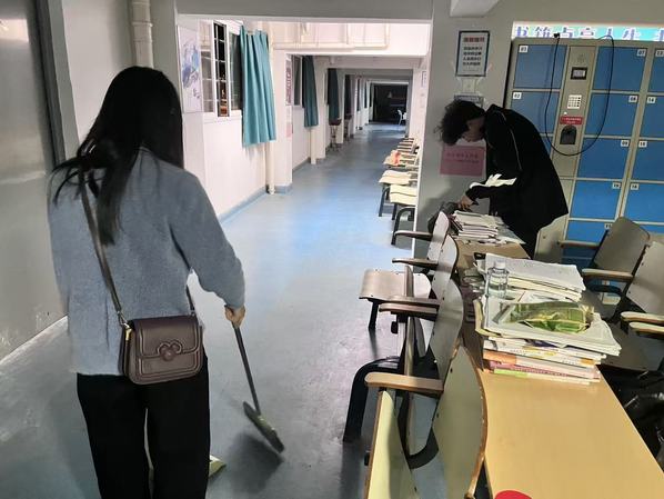 在活动负责人的带领下,志愿者们分组行动,以饱满的热情、认真的态度积极投入整理活动。他们有的拿着抹布,仔细擦拭着桌椅,并规整杂乱的书籍;有的打扫地板,对杂物、卫生死角进行重点清扫。志愿者们充分发扬奉献精神,不怕苦、不怕累、不怕脏,自习室里处处涌动着忙碌的身影,大家为建设干净舒适的学习空间挥洒着辛勤的汗水,贡献着自己的力量。