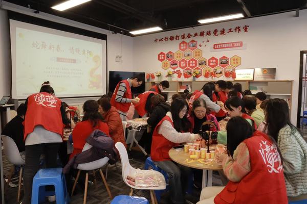 巧手同描新岁景,温馨满溢韵悠长。活动当天,志愿者将制作灯笼的材料逐一准备好,开启了这场充满欢乐与创意的爱心之旅。志愿者们耐心地讲解灯笼制作的每一个步骤,从搭建框架到粘贴装饰,手把手地教老人制作出独具蛇年特色的灯笼。在温馨的氛围中,大家齐心协力,一盏盏精美的蛇年灯笼逐渐成型,红红的灯笼映照出老人们脸上幸福的笑容。